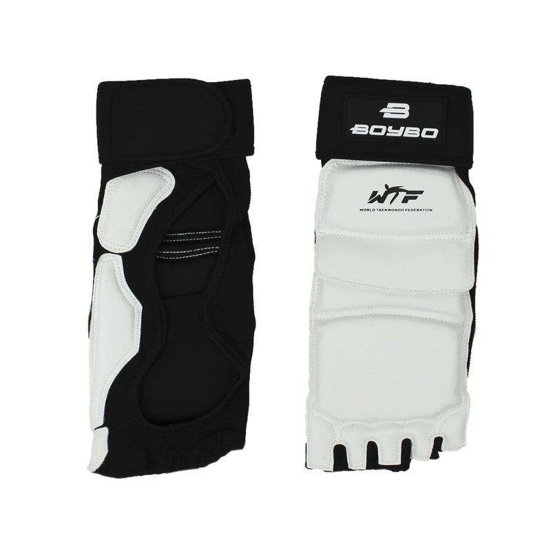 Накладки на ноги для тхэквондо Boybo анатомически подчеркивают стопу и комфортно сидят на ноге. Используются для защиты от травм стоп при нанесении ударов. Внутренняя ткань обеспечивает испарение любой влаги во время спарринга. Внешняя часть выполнена из искусственной кожи.Эластичные липучки обеспечивают хорошую надежную посадку, предлагая дополнительную поддержку лодыжки.