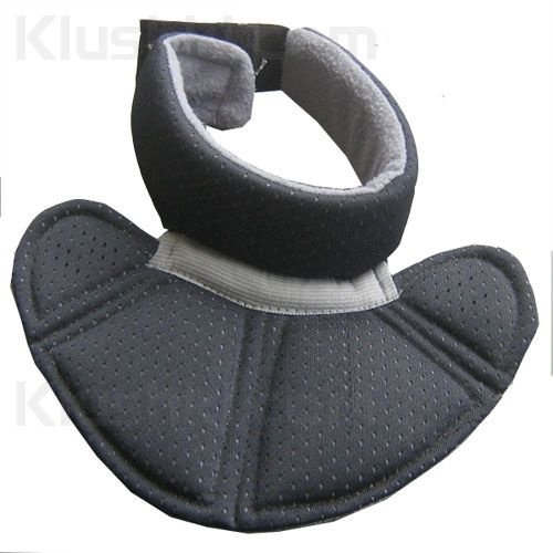 Защита шеи имеет комфортную посадку и обеспечивает эффективную защиту важного участка тела. Имеет легкую, подвижную конструкцию. Защита имеет двухсоставную конструкцию и состоит из мягкого элемента, охватывающего шею и сегментированного элемента закрывающего и защищающего область ключиц. Оба элемента подвижно соединены между собой мягкой связью. Внешняя отделка из прочного материала и устойчива к порезам и механическим повреждениям. Вспененный материал, используемый для внутреннего наполнения, поглощает энергию ударов, эффективно защищая шею и горло игрока. Мягкая подкладка обеспечивает дополнительный комфорт. Мягкая подкладка не раздражает и не натирает кожу шеи. Эластичный ремешок на липучке позволяет быстро отрегулировать плотность посадки.